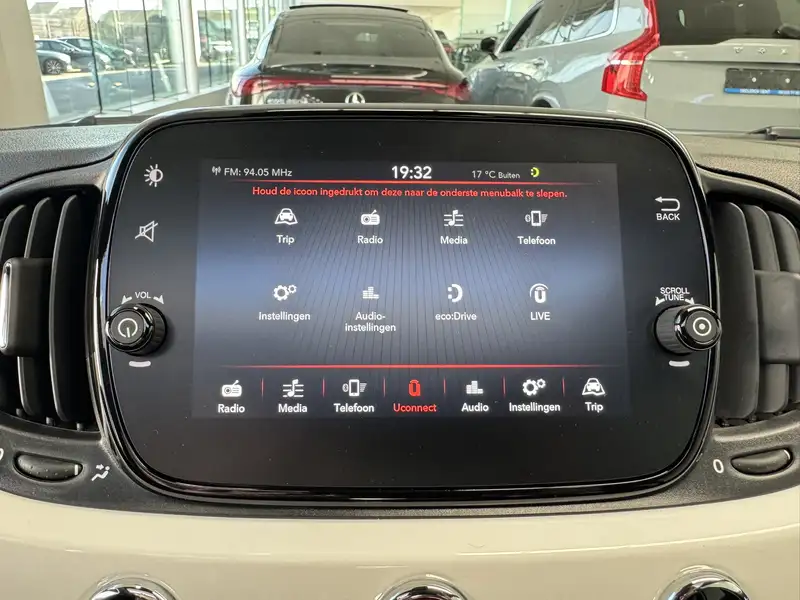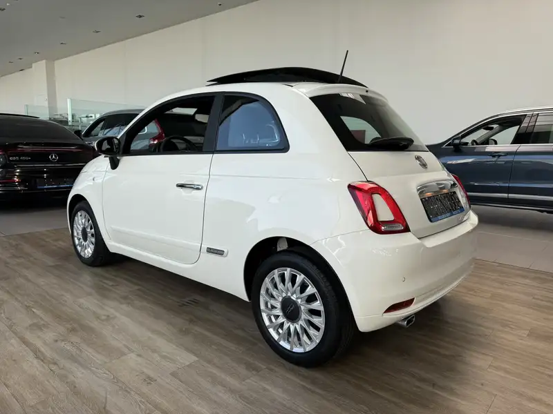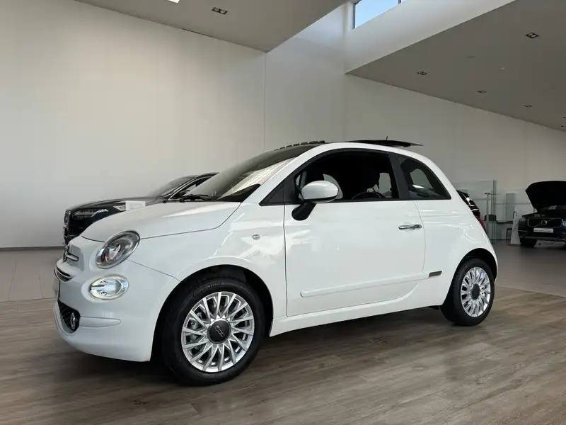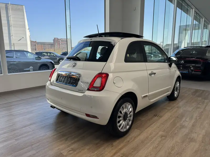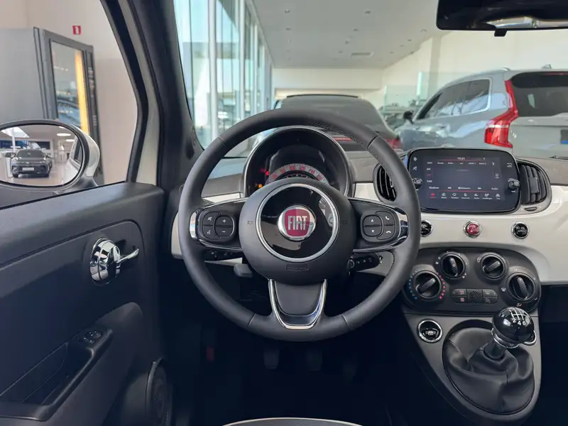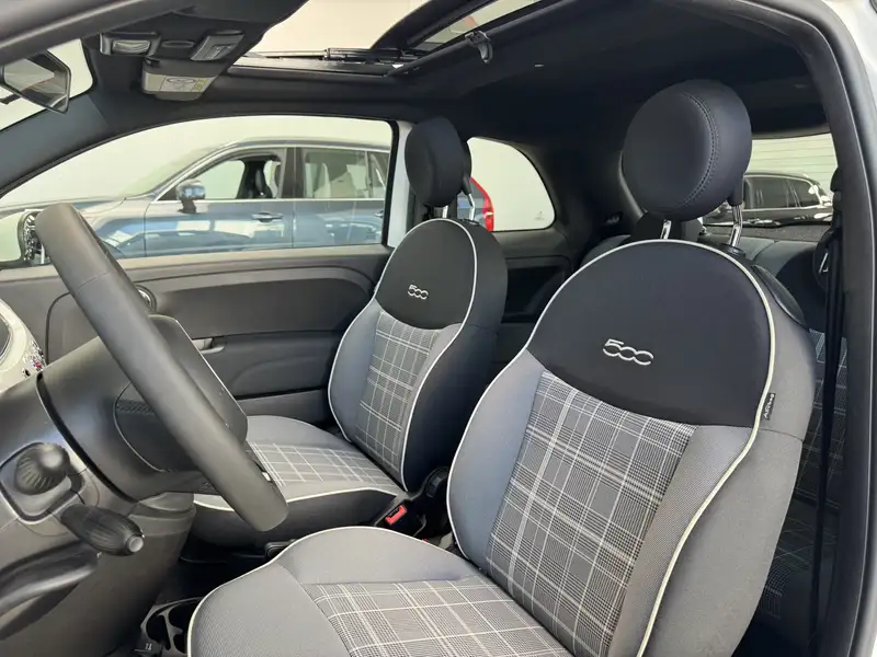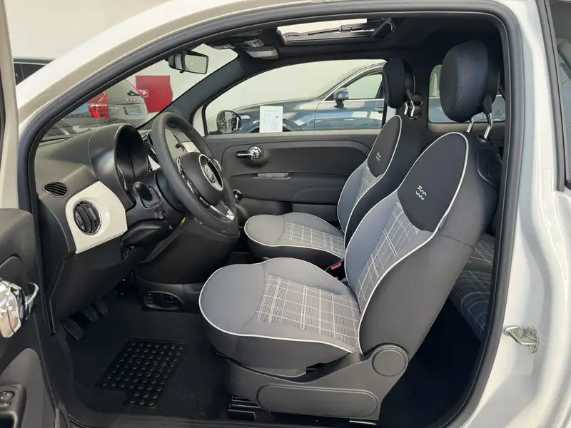 Splinternieuwe Fiat 500 met glazen panoramadak. Laatste exemplaar op voorraad. Ideale stadsauto met lage verbruikskosten.
